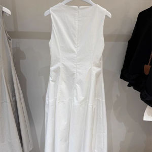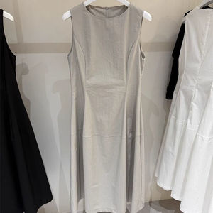 花苞白色无袖背心连衣裙2025夏季新款小个子黑色通勤收腰显瘦长裙