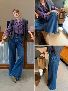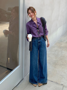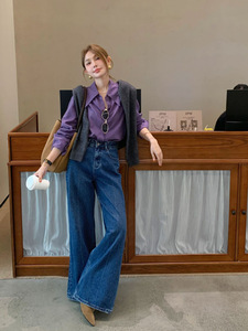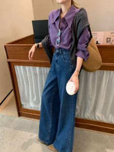 秋上新TOP欧制韩版时髦精必备神器显瘦百搭复古阔腿裤牛仔裤9069