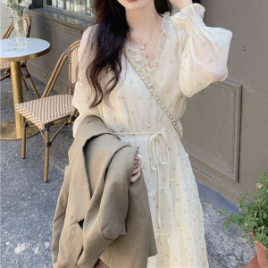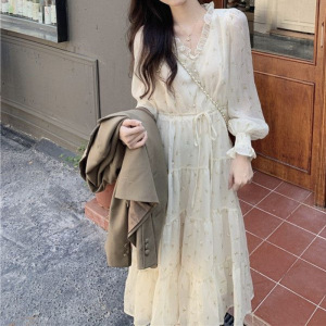 早秋2025新款女法式温柔风长袖蛋糕连衣裙秋季长款感小众显瘦裙子
