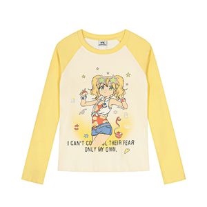 Fudge Pink 25秋季新款甜美少女卡通图案撞色拼接长袖T恤