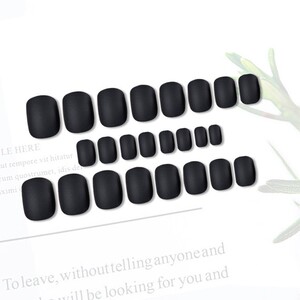 X026黑色磨砂甲片成品穿戴美甲贴片黑色磨砂短款假指甲贴片可拆卸