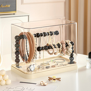 新款饰品展示架家用梳妆台发圈手链复古首饰架防尘透明发饰展示盒