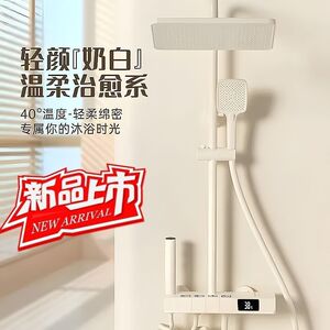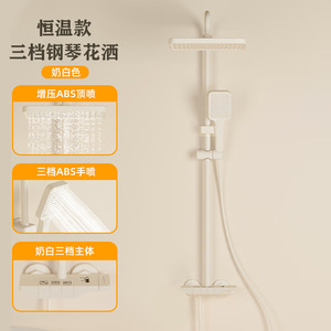 卫生间淋浴花洒套装纯铜奶油风恒温淋雨家用沐浴卫浴数显增压批发