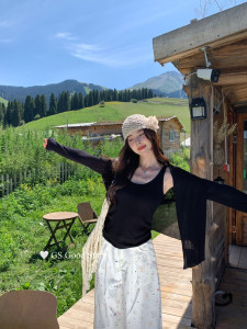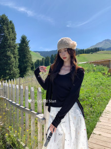 松弛入秋拿捏不同feel休闲慵懒风韩系针织开衫+背心套装G7003