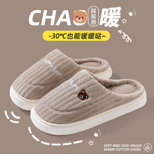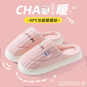棉拖鞋男士春秋冬天居家用室内防滑情侣家居保暖冬季毛毛绒拖鞋女