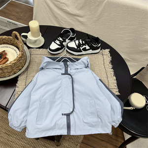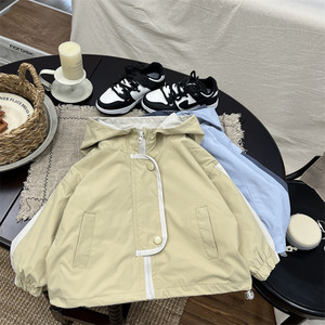 男童冲锋衣外套宝宝秋季薄新款连帽夹克上衣男童户外徒步秋装风衣