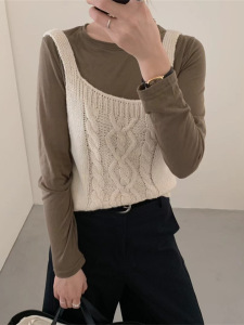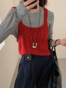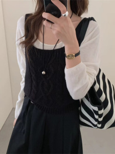 韩系短款甜美叠穿小个子针织吊带背心女2025早秋新款洋气毛衣马甲