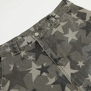 创意喷马骝星星花纹做旧牛仔弯刀裤复古宽松休闲直筒2025秋季新款