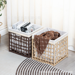 可折叠镂空藤编收纳筐桌面杂物玩具收纳箱家用衣服储物收纳盒