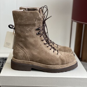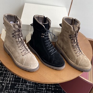 BC新款2025秋冬系带马丁靴女真皮厚底增高珠饰绒面小牛皮踝靴