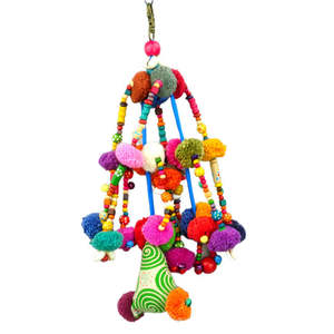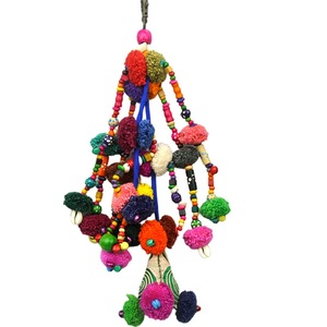 泰国彩色布艺大绣包绒球钥匙扣挂件云南民族风手工可爱包包挂饰品