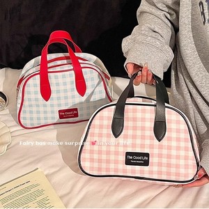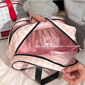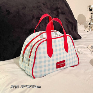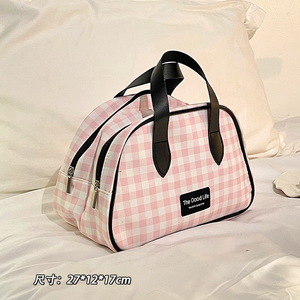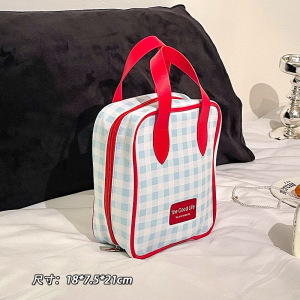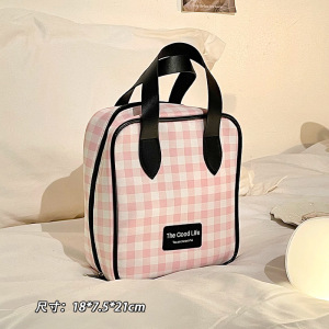 高颜值撞色格子手提化妆包大容量多层分区化妆品收纳袋防水旅行