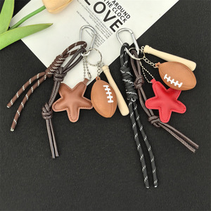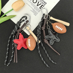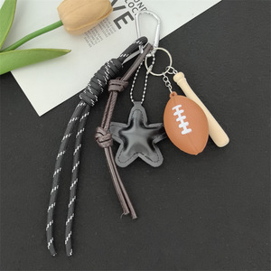 创意小众高级感棒球 橄榄球配饰五角星手工编织绳钥匙扣包包挂件