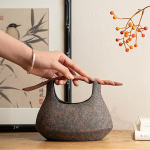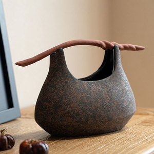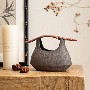 侘寂风复古手提篮摆件样板间民宿家居客厅卧室玄关桌面装饰摆件