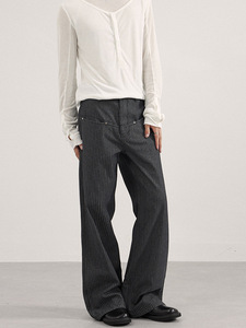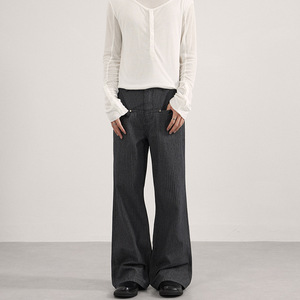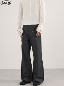 LKTM男装 美式cleanfit简约条纹牛仔裤男女高级感百搭显瘦微喇裤