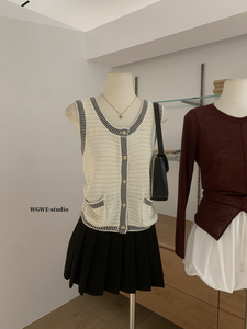 WGWE 秋季法式复古小香风百搭气质无袖V领背心吊带针织衫女W6699