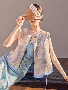 国潮复古设计感气质马甲女装新中式高端团花刺绣时尚背心 N3004