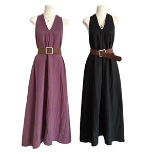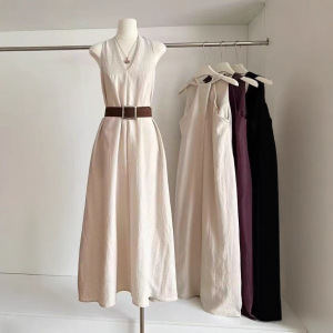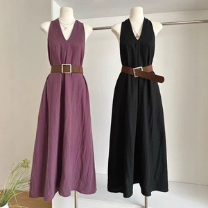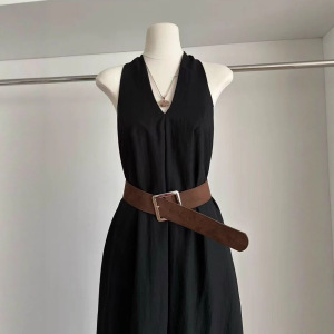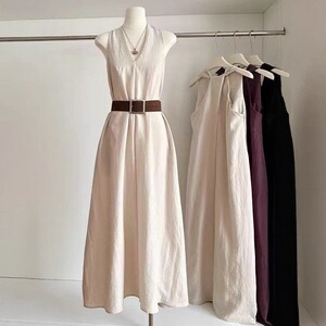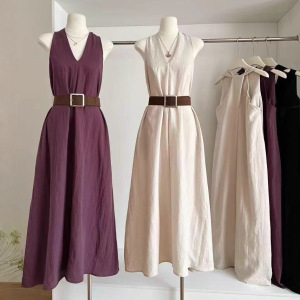配腰带 网红洋气轻奢气质时尚v领连衣裙夏季韩版新款名媛无袖长裙