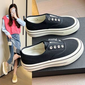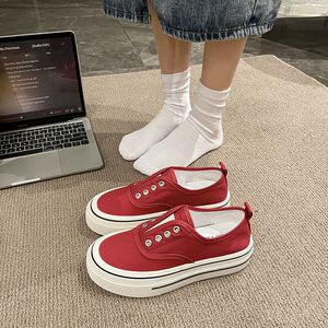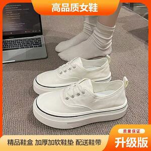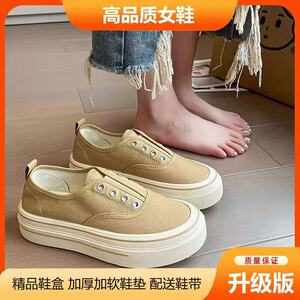 厚底松紧一脚蹬帆布鞋2025夏季新款百搭透气休闲轻便小白鞋板鞋