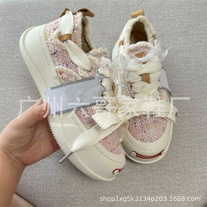 檀健次同款帆布鞋女2025年秋季新款厚底蕾丝2.0蝴蝶结情侣休闲鞋