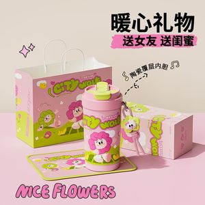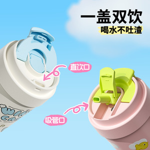 极遇保温杯女生家用高颜值陶瓷内胆吸管咖啡杯便携吸管双饮杯礼品