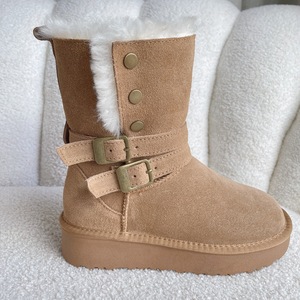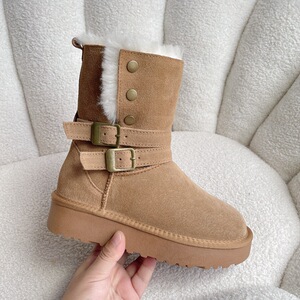 订单批发女神皮扣两穿真皮毛一体雪地靴牛皮羊毛女冬棉鞋马丁靴子