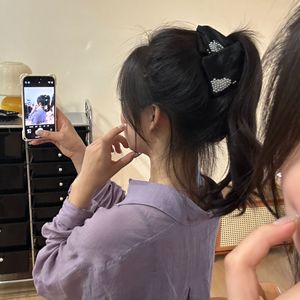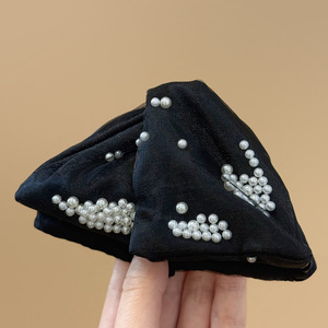 赫本风水钻珍珠网纱三角抓夹夏季新品鲨鱼夹发饰适合扁头发卡头饰
