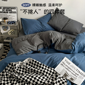 母婴级A类正品床上四件套ins裸睡纯水洗棉床单被套被罩宿舍三件套