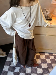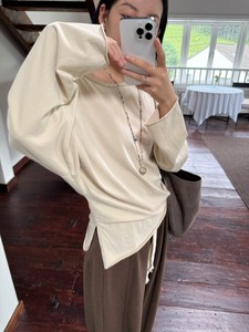 DIGM | 2025秋季极简慵懒风松弛感不规则开衩卷边露肩T恤女A09195