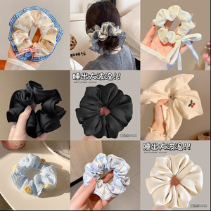 韩系蓝色波点大肠发圈女高级感慵懒风发圈女低马尾发饰简约款头绳