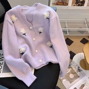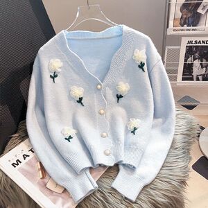 针织开衫毛衣外套女装春装春秋外穿新款爆款欧货宽松v领上衣