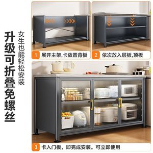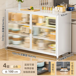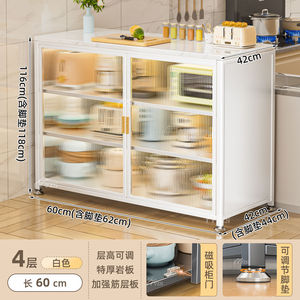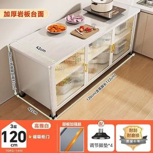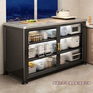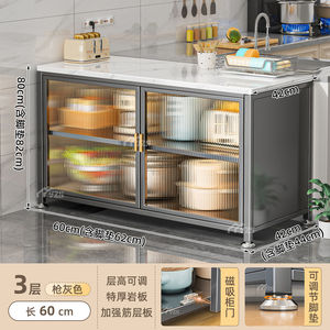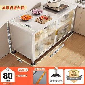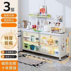 厨房岩板切菜桌操作台落地家用多层置物架微波炉烤箱储物柜双层桌