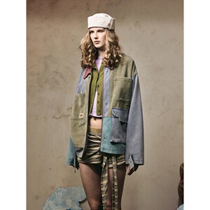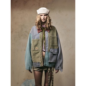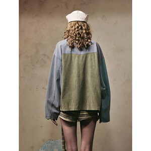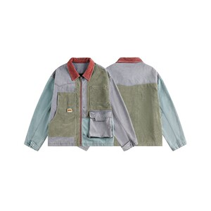 AYWTER美式潮牌复古水洗帆布拼色翻领夹克宽松工装外套男女W0480