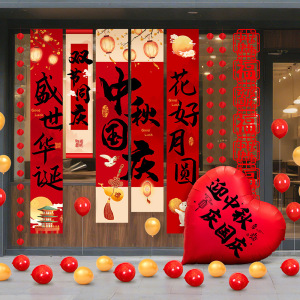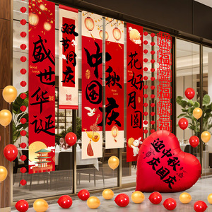 欢度中秋国庆节氛围布置装饰用品珠宝店铺门挂布气球十一主题活动