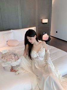 法式浪漫吊带睡裙超长女带胸垫宫廷风睡袍丝质两件套高级感睡衣