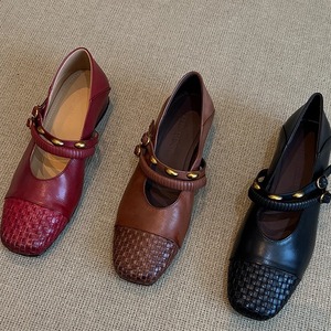 羊皮版2025春秋款粗跟玛丽珍女鞋低跟方头编织单鞋女百搭
