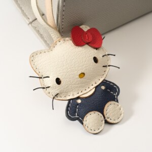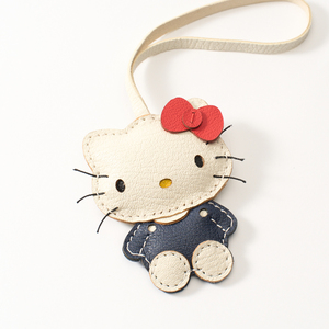 进口法羊真皮HelloKitty挂件可爱包包书包装饰皮质KT猫小饰品挂饰