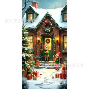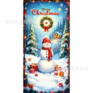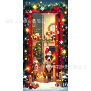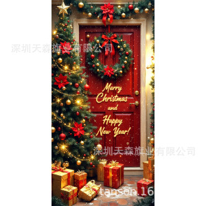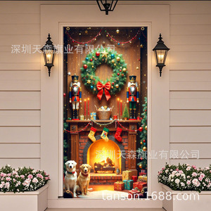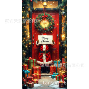 跨境新款热卖圣诞节门帘圣诞老人门盖节日装饰旗帜户外拍照背景布