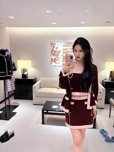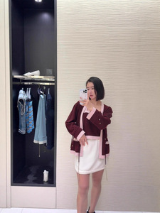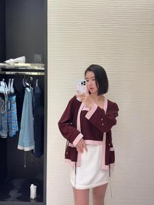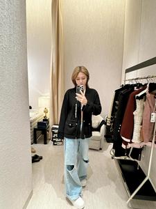 南油正确版 小香手工坊系列 秋冬新款撞色钻扣抽绳山羊绒针织开衫