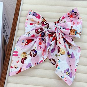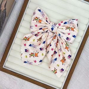 新款跨境热销卡通儿童蝴蝶结发夹布艺少女后脑勺可爱发卡缎面发饰