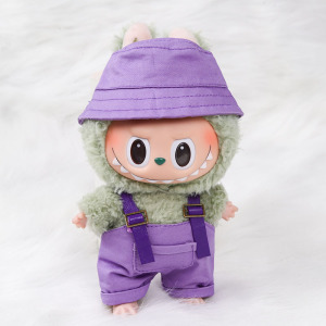 现货拉布布娃衣labubu坐坐派对马卡龙搪胶盲盒17厘米15cm背带裤