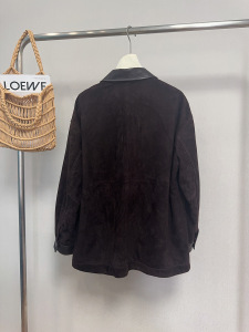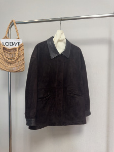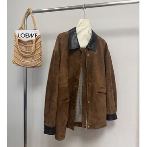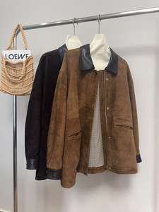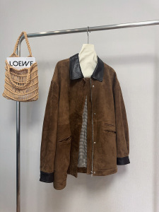 巴恩风复古山羊反绒皮真皮皮衣廓形皮夹克中长外套老钱风2025新款