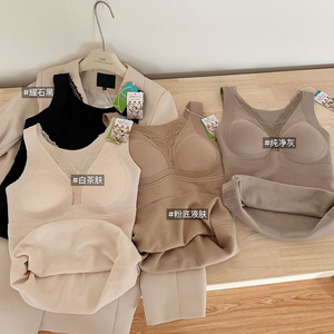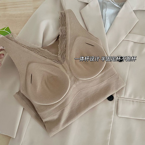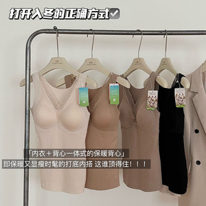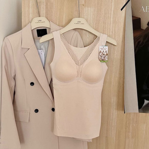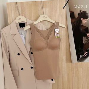 莱赛尔羊绒保暖背心女士带胸垫免穿内衣蕾丝加绒加厚秋冬新款上衣