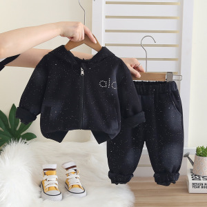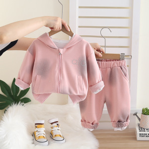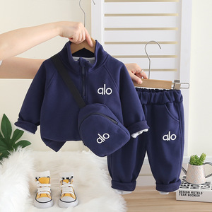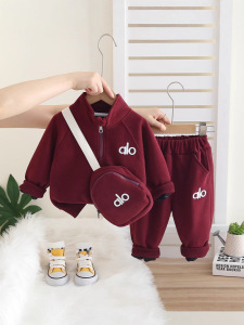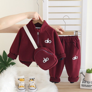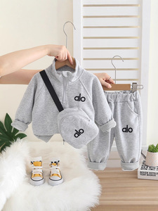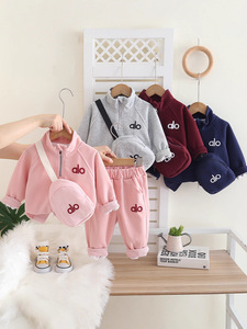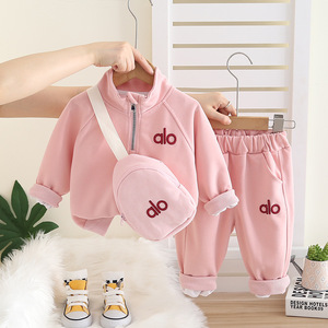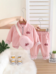 洋气男女童挎包半拉链春秋卫衣套装2025新款儿童休闲运动帅气衣服