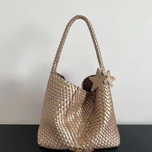 香槟色编织纹托特包包女大容量大包感手提单肩水桶包厂供应链批发