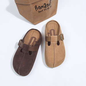鞠婧祎同款厚底花生吐司勃肯鞋女2025秋季新款复古包头穆勒半拖鞋