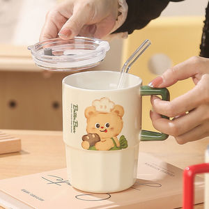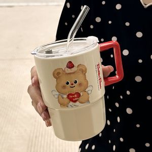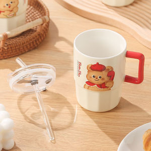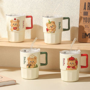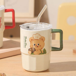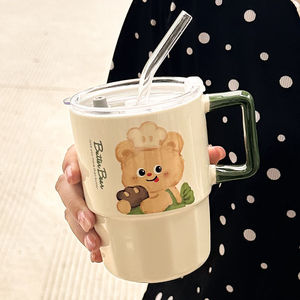 高颜值吸管杯子马克杯带柄夏季高颜值设计感咖啡杯果汁牛奶杯男女