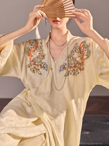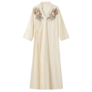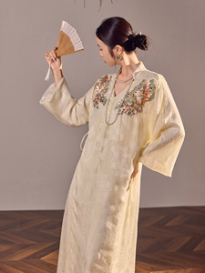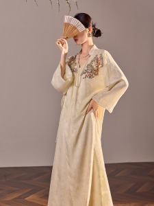 气质新中式高端刺绣设计长裙国风新款时尚轻奢连衣裙女装 N6030