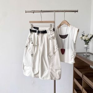 高腰显瘦遮跨牛仔工装阔腿裤女2025夏季新款韩版百搭外穿七分裤