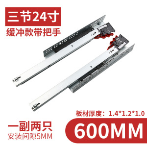 哇噢定制三节托底隐藏式滑轨阻尼抽屉滑橱柜缓冲轨道按压反弹导轨